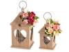 Set 2 lanterne legno con intaglio cuore, mazzo peonie e rose