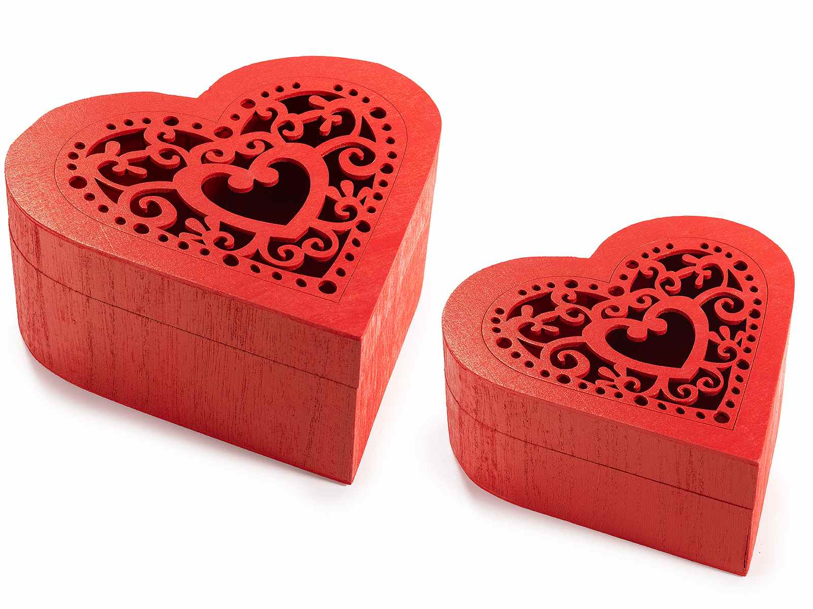 Scatole a forma di cuore in legno con intagli e chiusura a calamita, in set da 2 pezzi, ideali a San Valentino