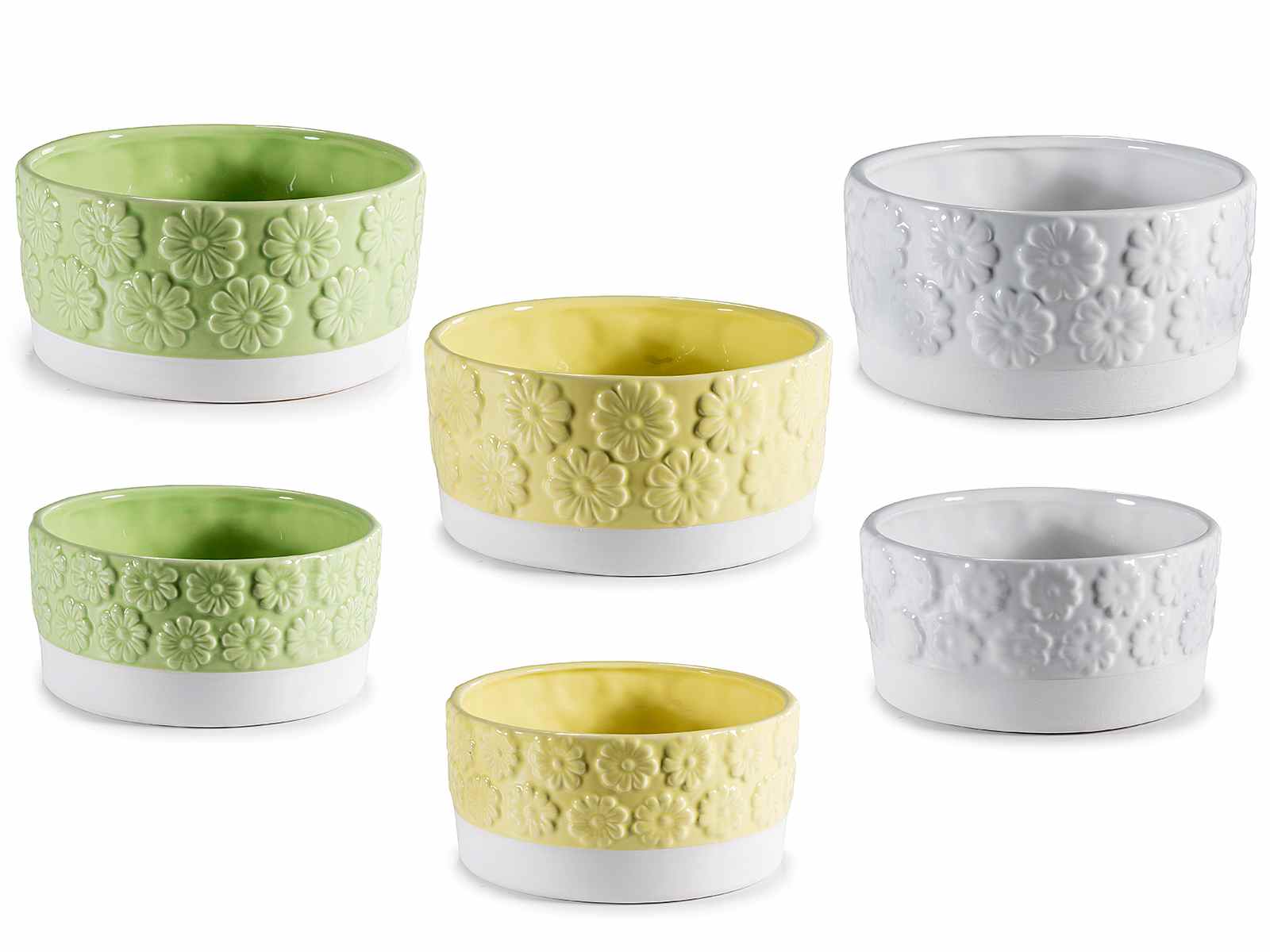 Vasi in ceramica colorata con fiori in rilievo in set da due pezzi