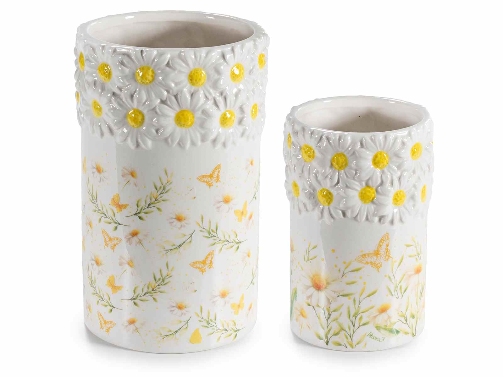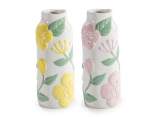 Set 2 vasi in ceramica con fiori stampati e in rilievo