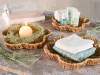 Set 3 cestini, vassoi a fiore in giacinto intrecciato