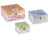 Set 3 scatole in legno foderato con gancio chiusura e fiocco