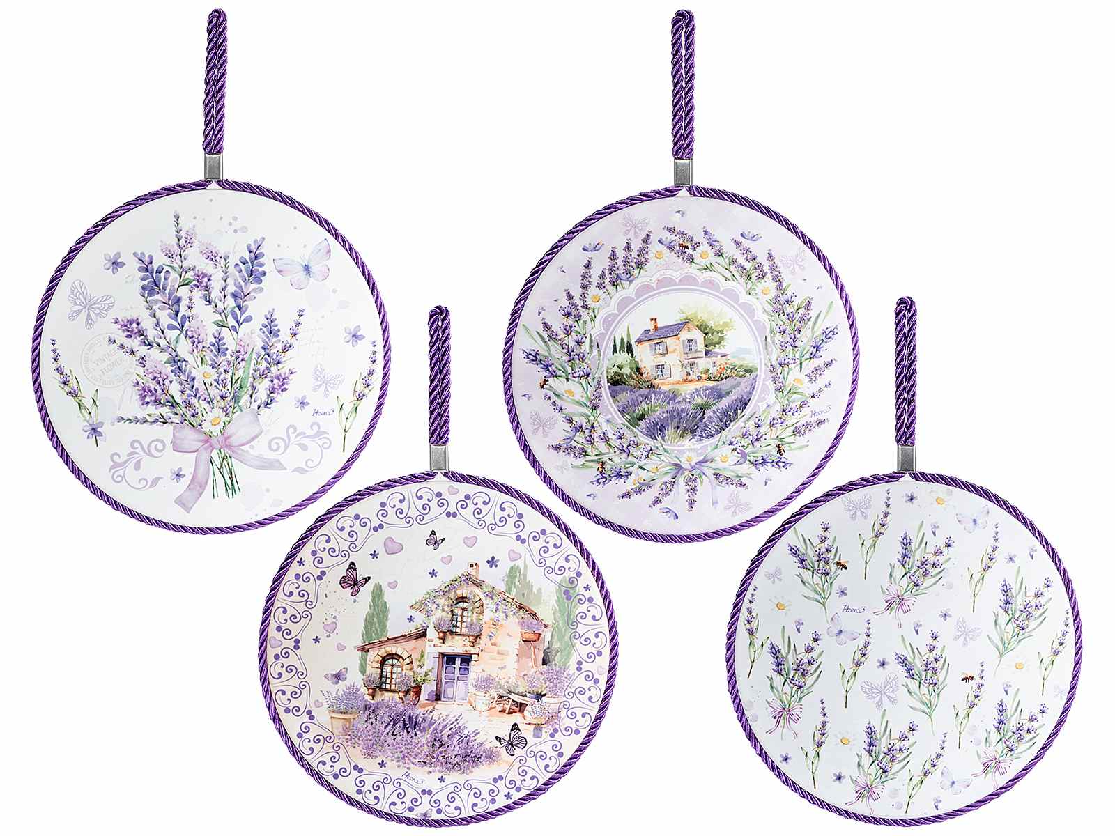 Sottopentola in ceramica con base in sughero e decori lavanda