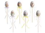 Stick in legno con uova colorate e piume
