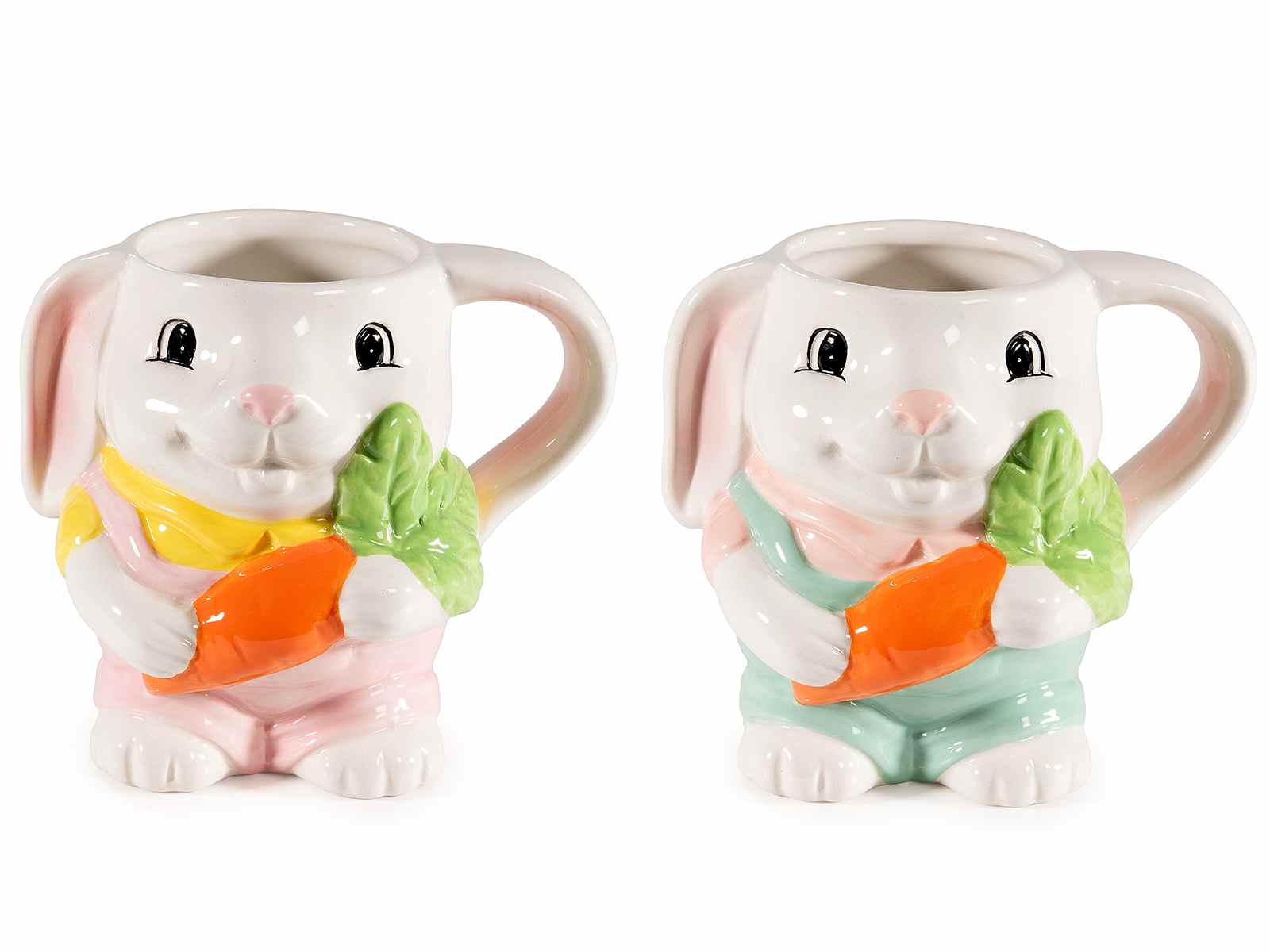 Tazze pasquali a coniglietto con carota in ceramica e dettagli in rilievo