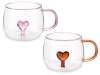 Tazza vetro 300ml con cuoricino interno 3D e manico colorato