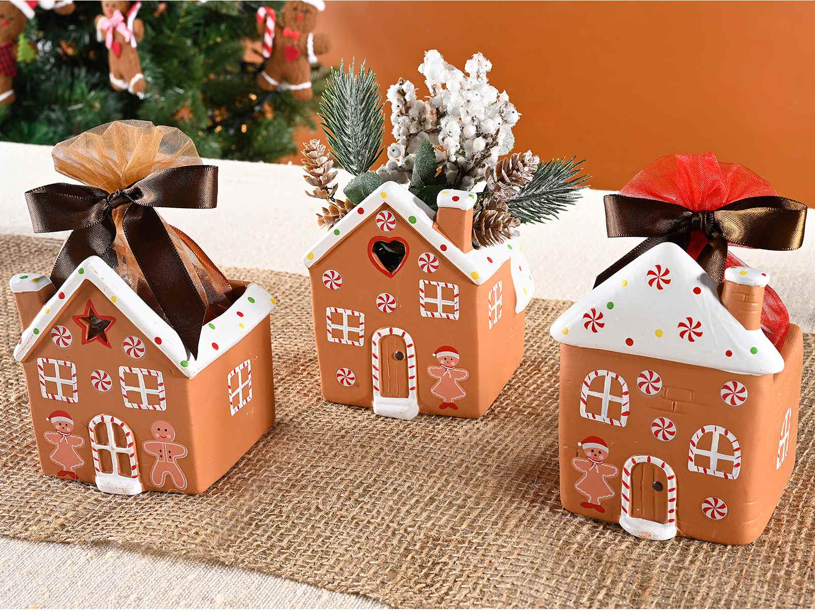 Vasetto contenitore a casetta di pan di zenzero di Natale con decori dolcetto in ceramica