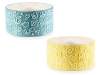 Vasi tondi colorati in ceramica con decorazioni floreali bianche in rilievo