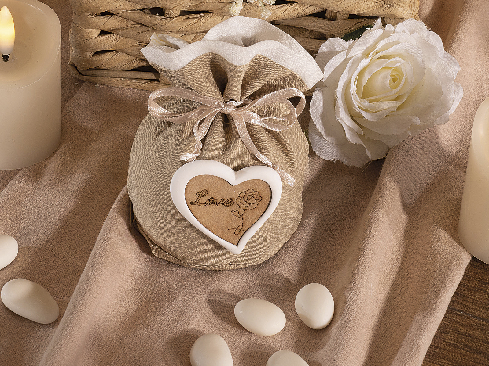 72 Pez Sacchetto in stoffa effetto seta con cuore e nastro tirante