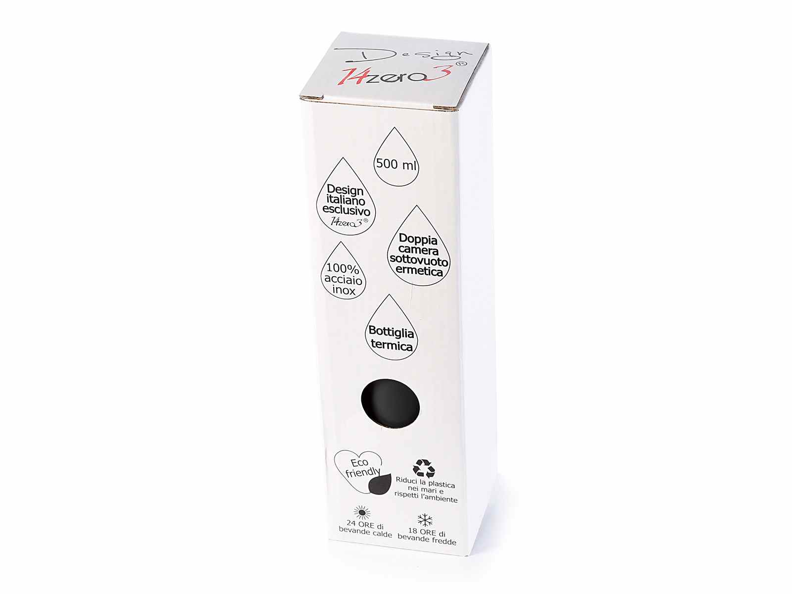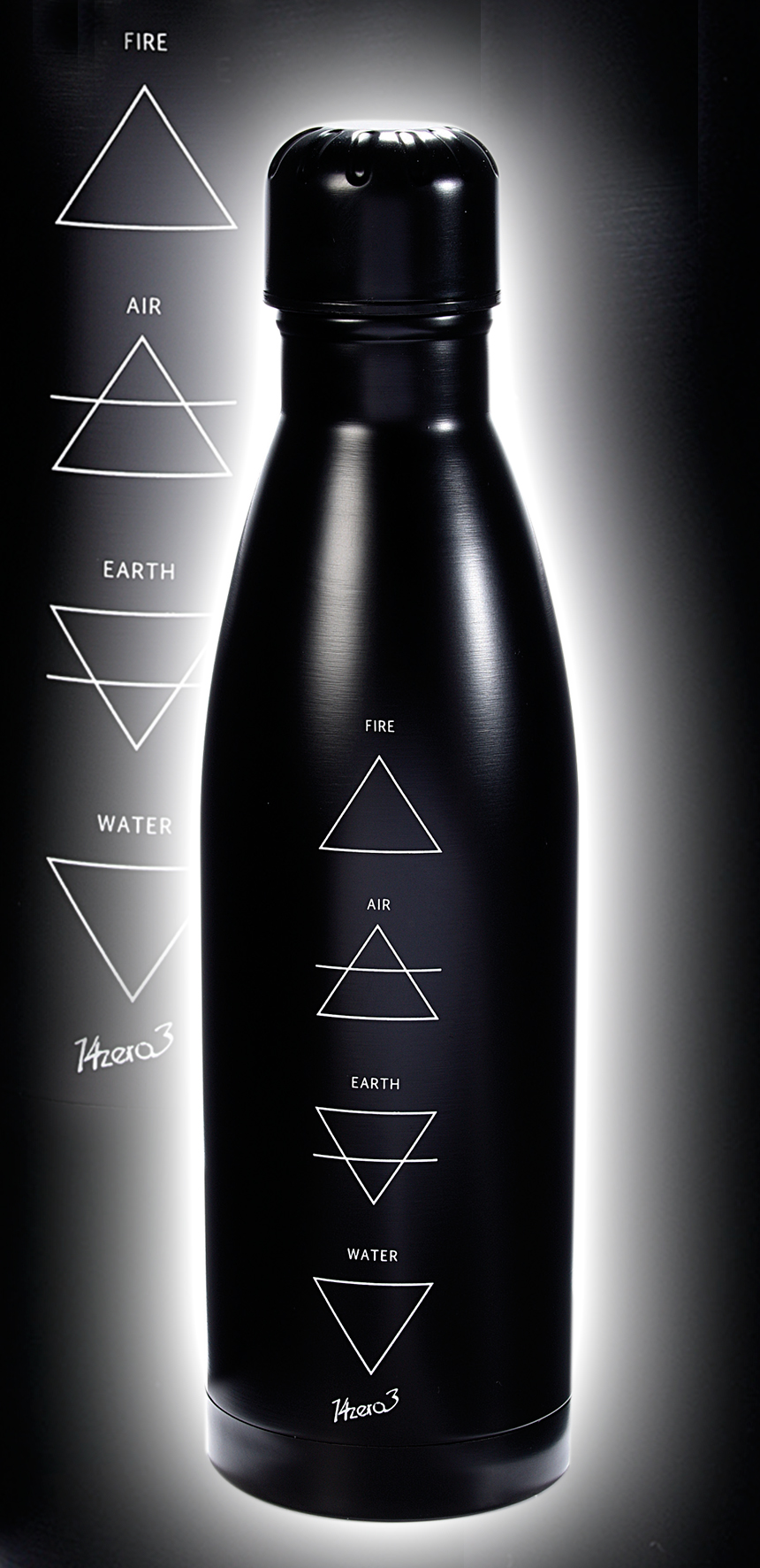 Bottiglie termiche da 500 ml in acciaio inox color nero design 14zero3 "4 elementi" - Personalizzabile con il tuo logo, chiamaci per un preventivo