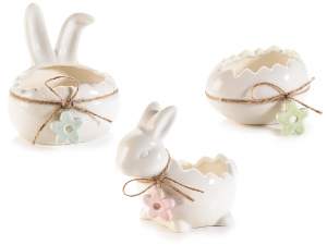 Vasetti / contenitori portadolci in ceramica pasquali a uovo con pendaglio a fiore
