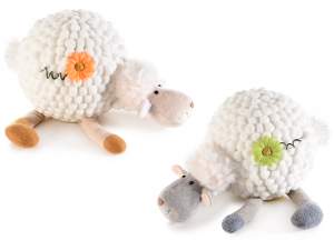 Pecorelle pasquali decorative morbide sdraiate con margherita