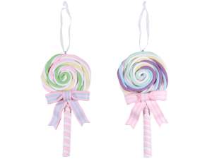 Decoro albero di Natale a lecca lecca con fiocco in pasta di resina colorata con fiocchetto da appendere