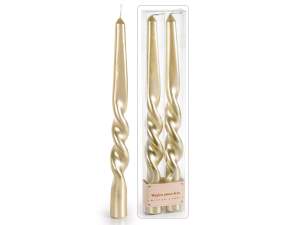 Candela stelo oro metallizzato con decori a foglie in rilievo in scatola da due pezzi