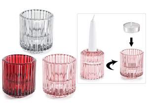 Portacandela / portatealight in vetro colorato e lavorato con doppio uso