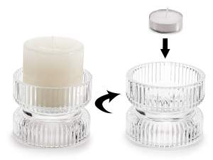 Portacandela a clessidra doppio uso in vetro trasparente zigrinato in confezione regalo