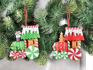 Addobbo albero a trenino di Natale in pasta di resina colorata con cordino per appendere cm 10,5 x 10 H.