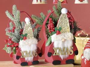 Cestini a secchiello in panno con Babbo Natale con campanella su cappello e cartello scritta Merry Christmas