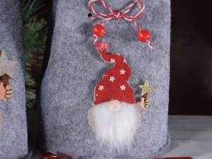 Sacchetti natalizi in panno con fiocco, decoro Babbo Natale e stella glitterata in set da due pezzi