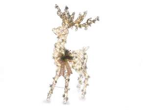 Renne sugli sci con anima in metallo e luci LED. Decoro luminoso per allestire vetrine di Natale e decorare allestimenti e luminarie festive.
