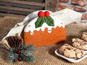 Piatto vassoio di Natale con coperchio a cappello adatto al contatto alimentare realizzato in ceramica colorata