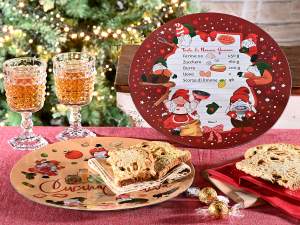 Poggiamestolo cucina natalizia in ceramica decori alberello e pacchi dono in rilievo e fiocco, in scatola regalo