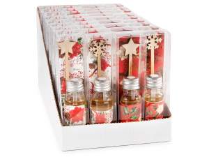 Piccoli profumatori di Natale per ambiente con stick in legno con decoro natalizio in confezione regalo ed espositore da 36 pezzi
