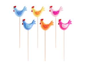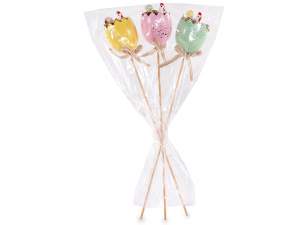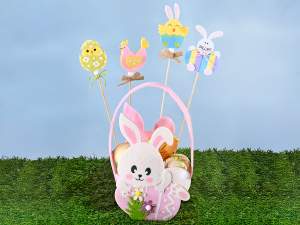Stick di Pasqua con uova colorate e personaggio pasquale e fiocchetto, ideali per packaging e confezioni pasquali