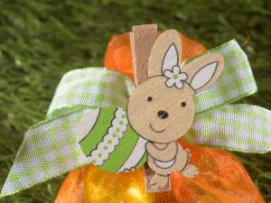 Conigli adesivo pasquali in legno colorato in espositore da 80 pezzi