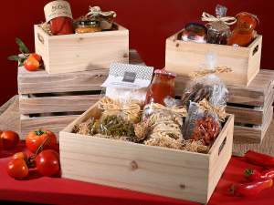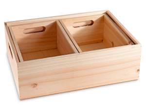 Cassette / cestino in legno di forma rettangolare in set da due pezzi Grande: cm 27,5x14x12,5 H. Piccola: 23,5 x 10 x 10,5 H
