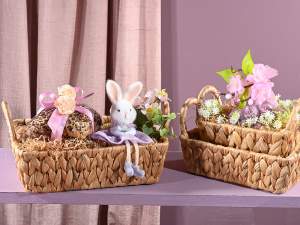 Cestini in giacinto naturale ritorto con manici in set da 2 pezzi Grande: cm 33 x 23 x 16 H. Con manici: 22 H - Base: 23 x 14 - Piccolo: 25,5 x 18,5 x 14 H (c/manici 19,5) - Base: 19 x 11 - Con rivestimento interno