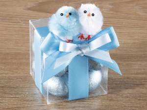Pulcini di Pasqua decorativi colorati e modellabili in espositore da 60 pezzi
