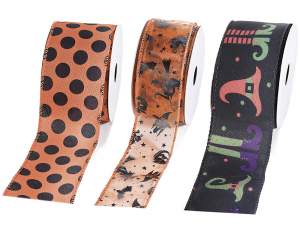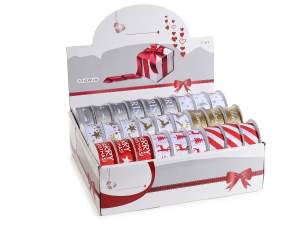 Nastri natalizi decorativi per packaging Natale con bordo modellabile in espositore da 36 rotoli