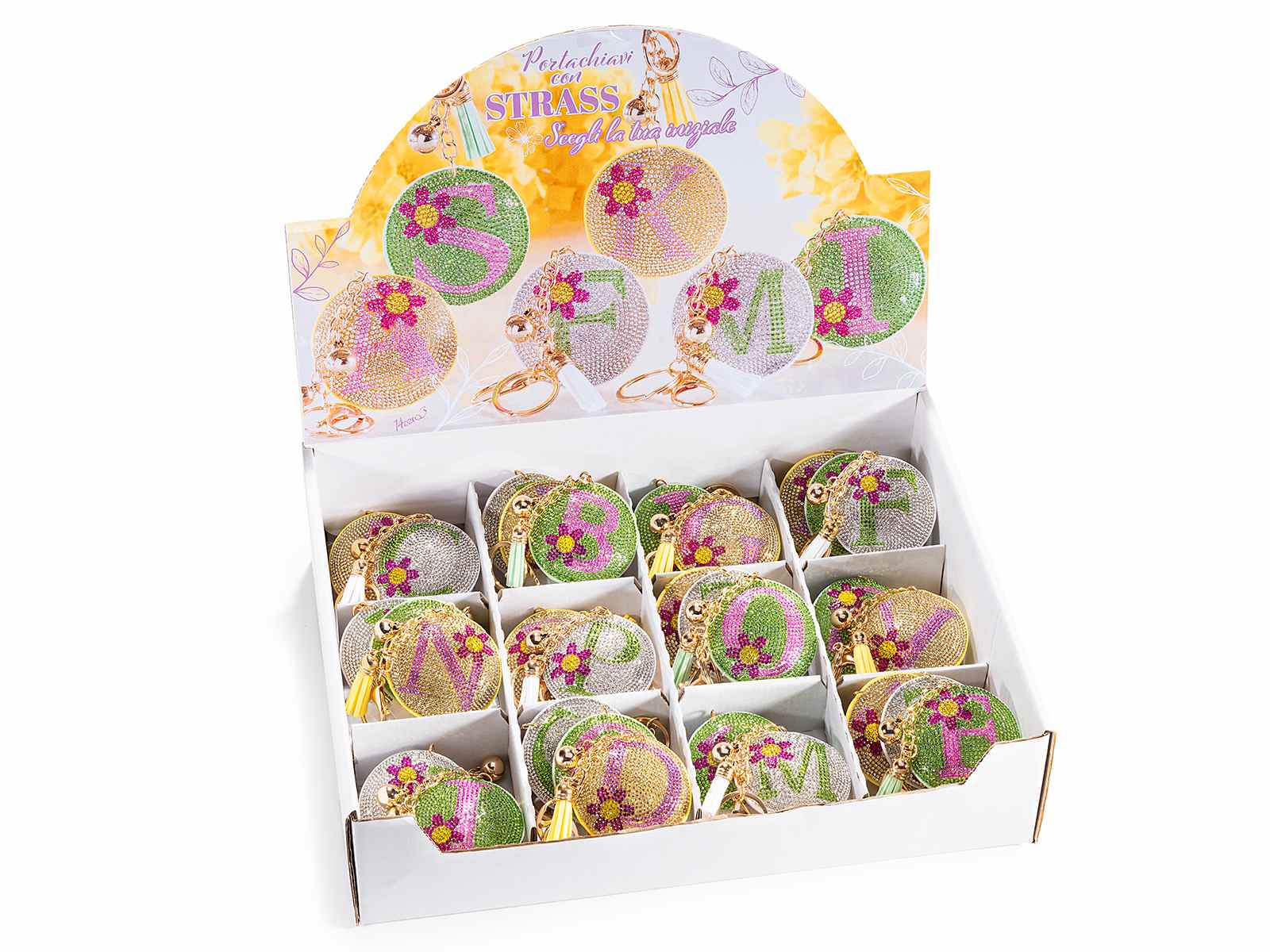 Charm / breloc litere cu strasuri si ciucuri