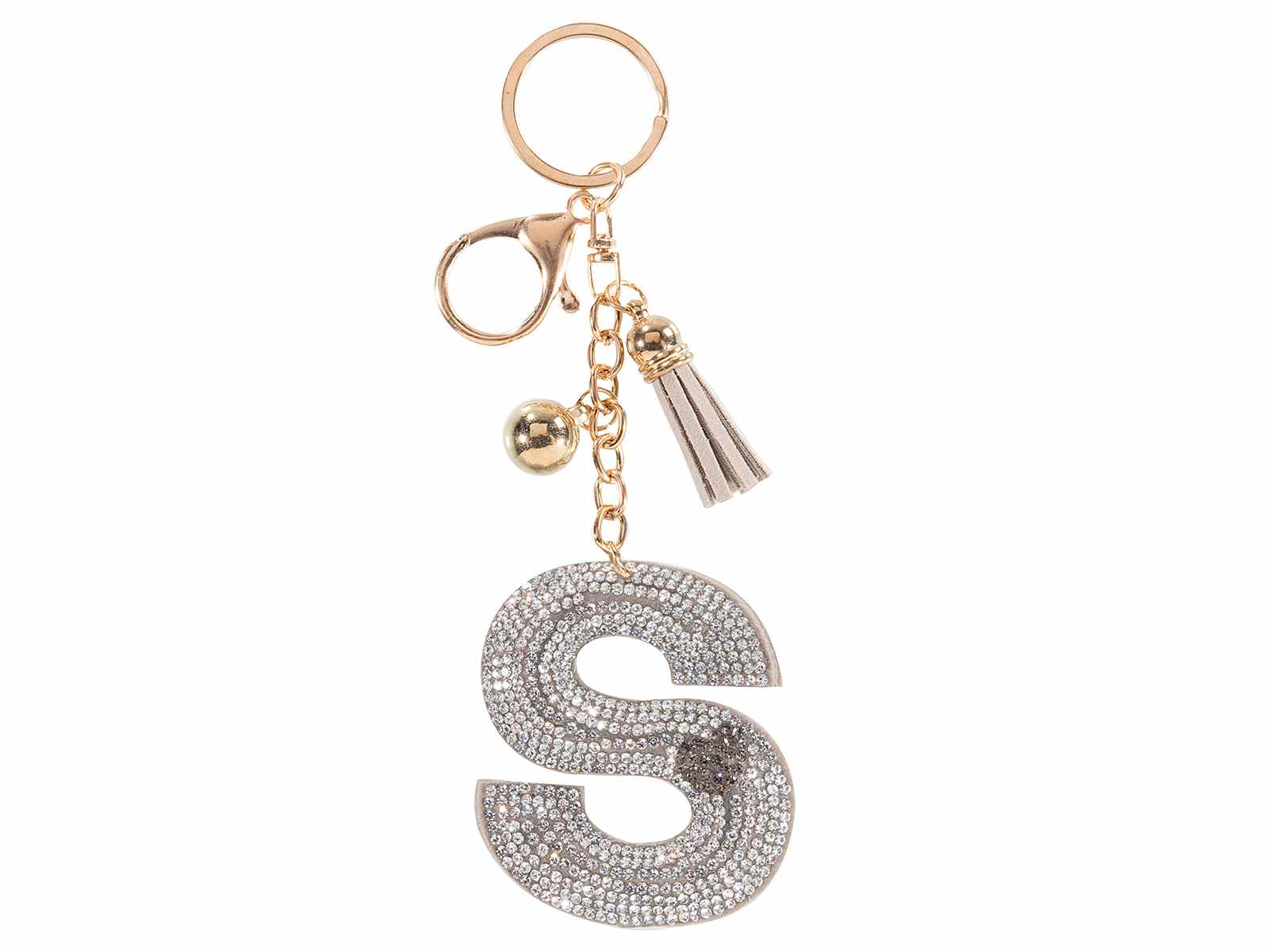 Breloc cu litera S din rășină / breloc cu ciucuri de card