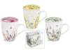 Cești de ceai cu filtru de porțelan și imprimeu floral în cutie cadou
