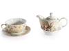 Set ceașcă, ceainic și farfurie de porțelan cu decorațiuni î