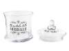 Borcan alimentar din sticlă cu capac și inscripție