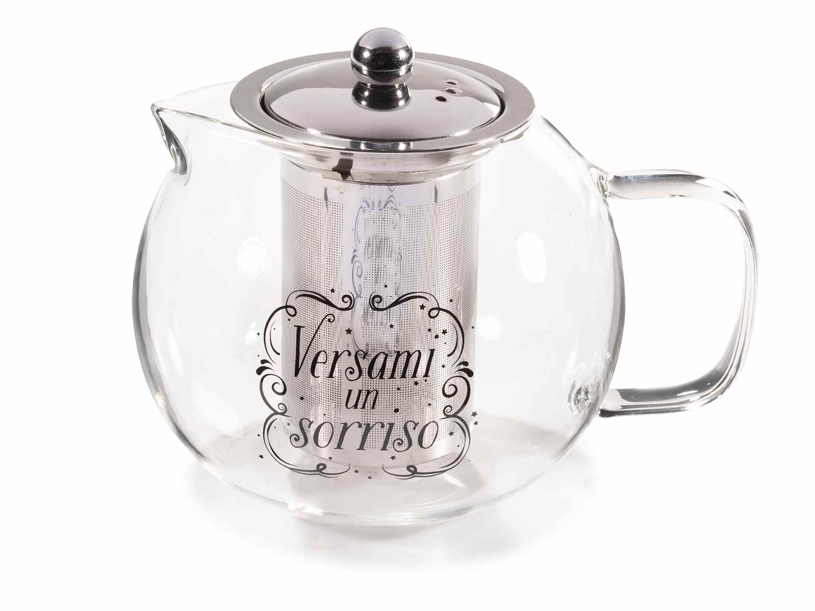 Ceainice din sticlă alimentară, filtru, capac și inscripție din oțel