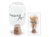 Suport pentru scobitori din sticlă alimentară, cu dop de plută și inscripționate „StuzzichiAmo?”