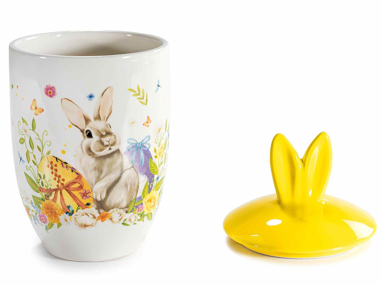 Borcane ceramice pentru fursecuri/torturi, sigure pentru alimente, cu capace în formă de ureche și imprimeu cu iepurași de Paște