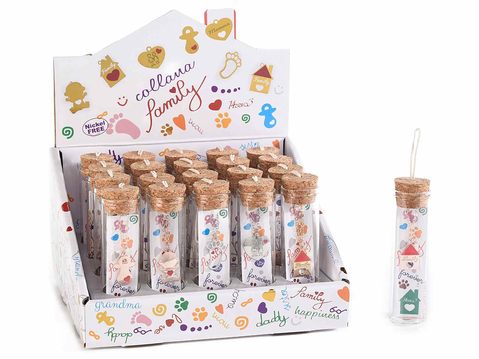 Colier metalic naștere / familie în eprubetă de sticlă