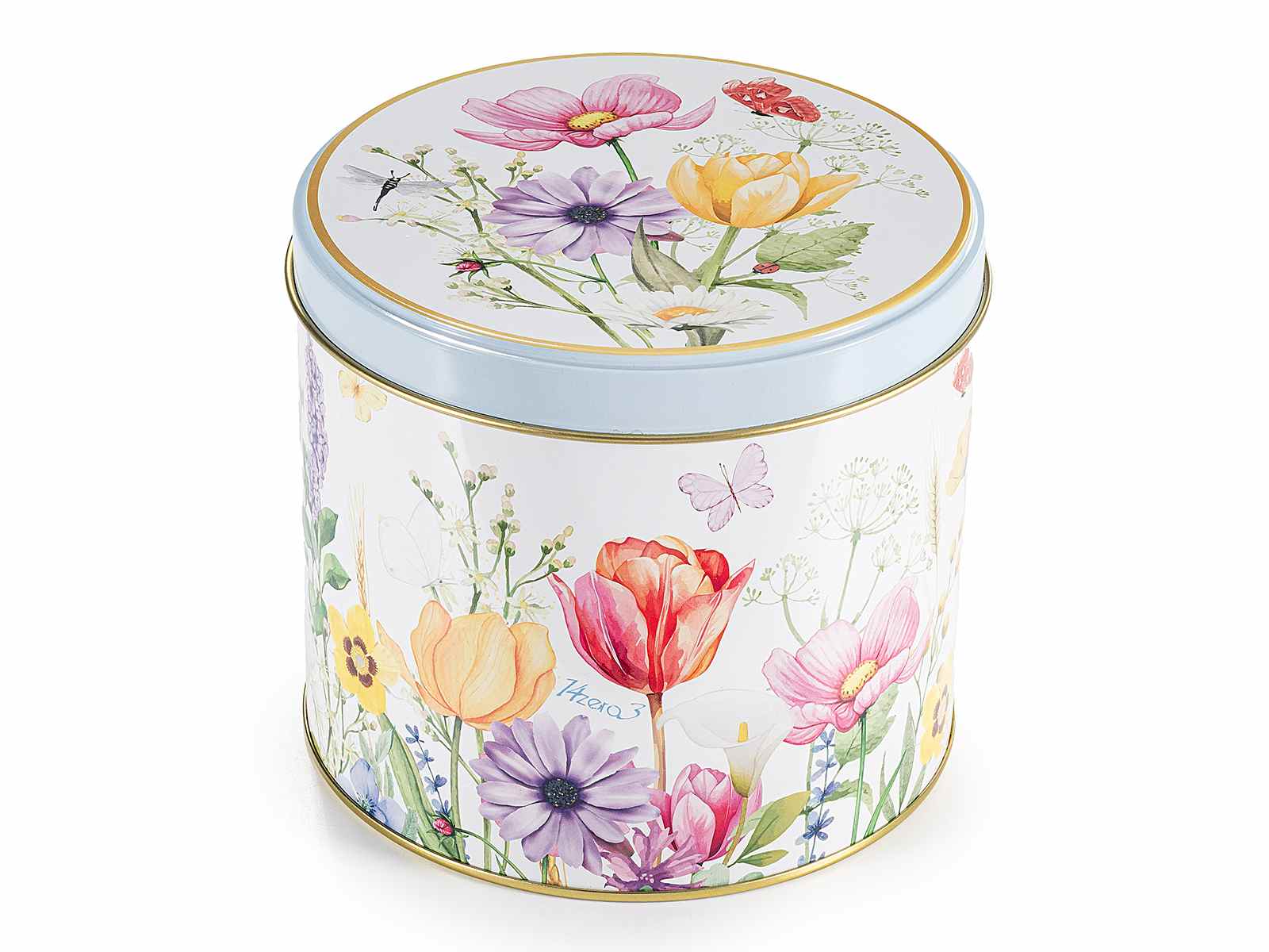 Căni de porțelan cu decorațiuni florale în cutie cadou metalică