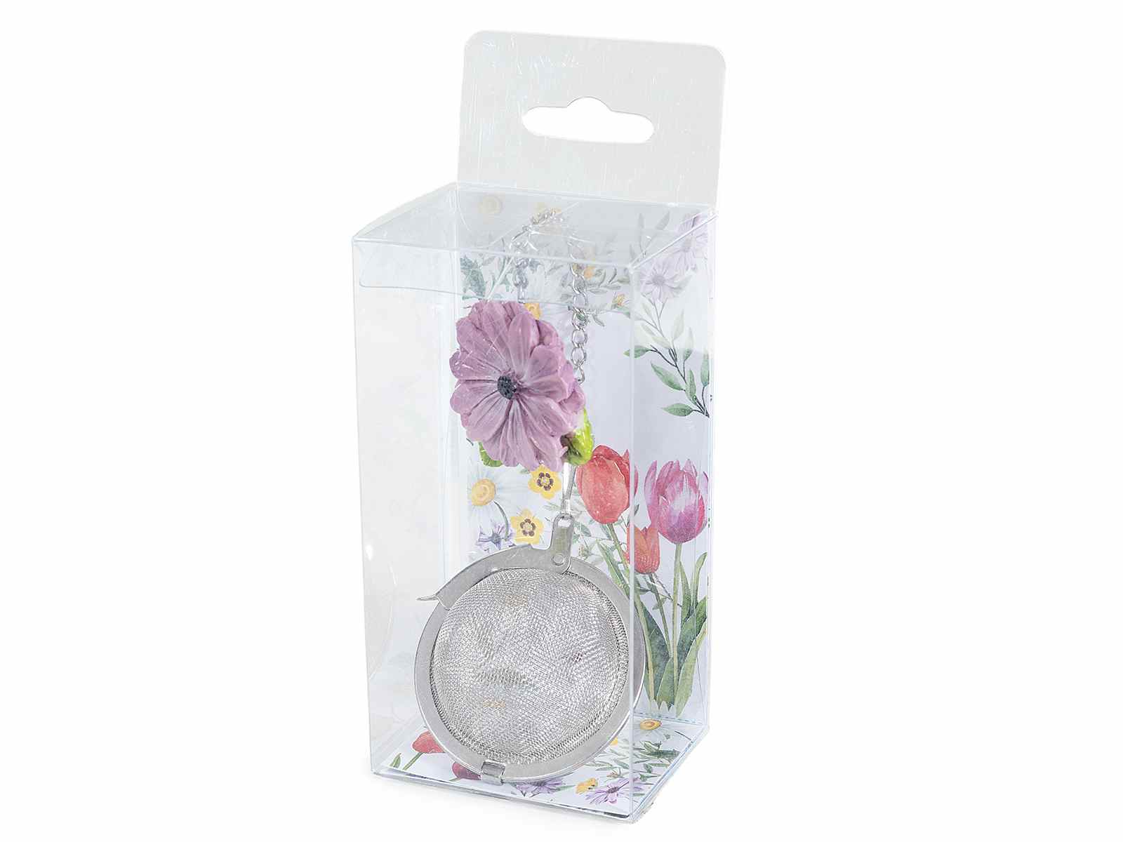 Infuzoare din oțel inoxidabil de calitate alimentară cu flori colorate din rășină, într-o cutie cadou