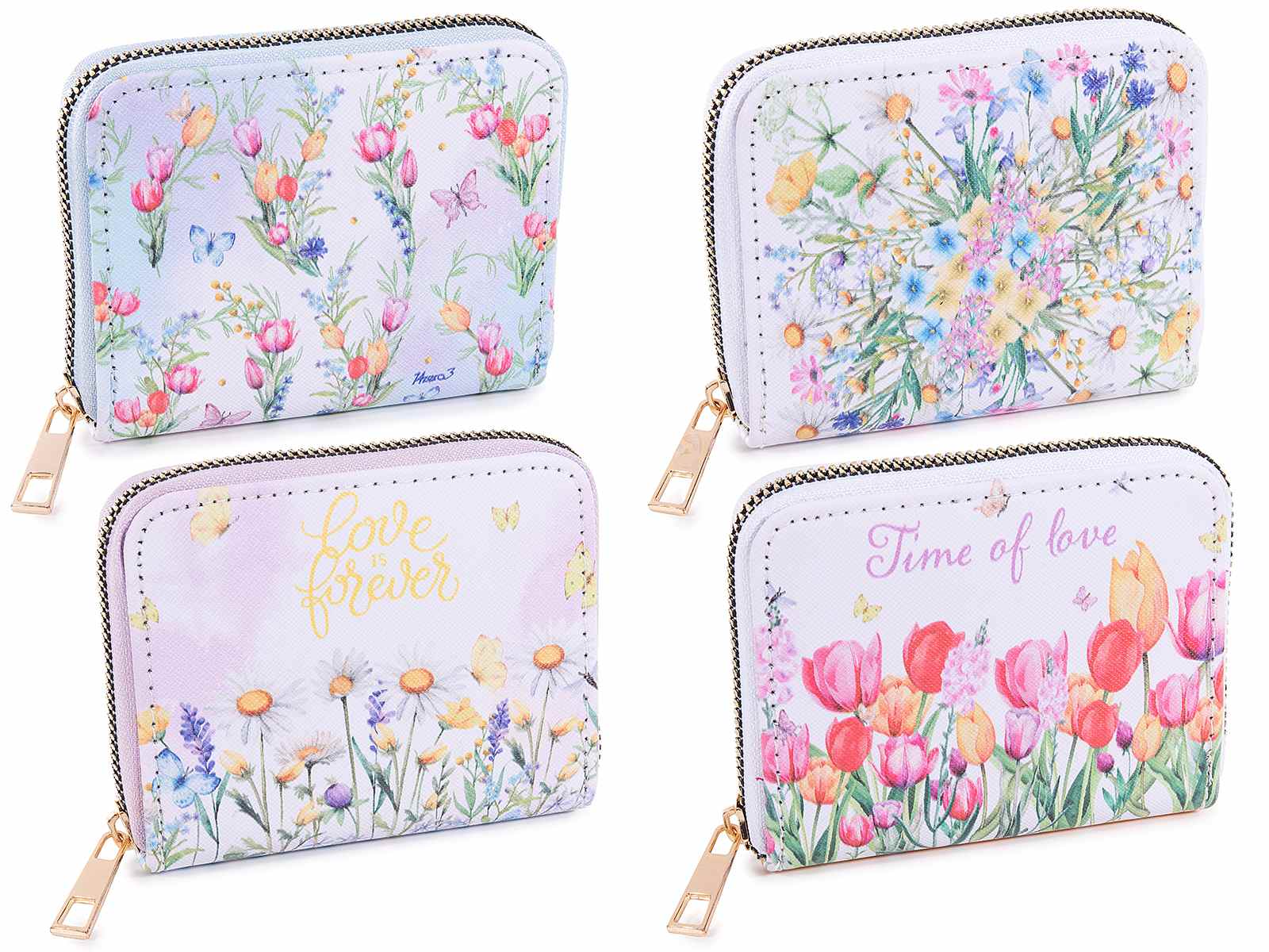 Portofel de dama din piele artificiala cu imprimeu floral, cu fermoar