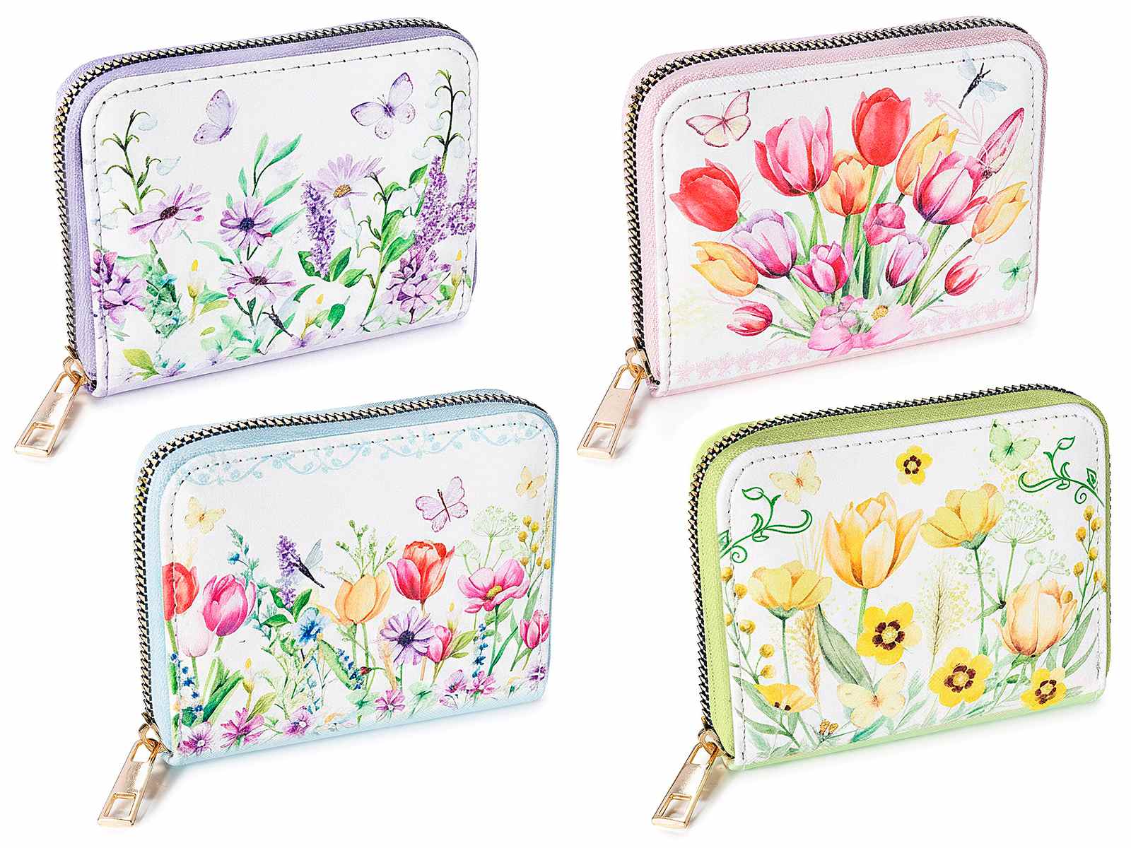 Portofel de damă din piele ecologică cu fermoar și imprimeu floral
