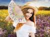 Evantai pliabile din lemn și țesătură cu imprimeu floral