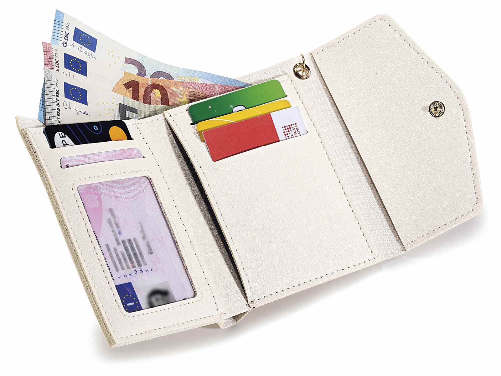 Portofel din piele ecologică cu ciucure și imprimeu cu îndră