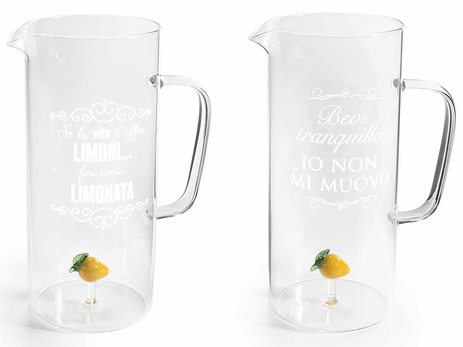 Carafe din sticlă de 1,5 l cu lămâie 3D, mâner și litere albe