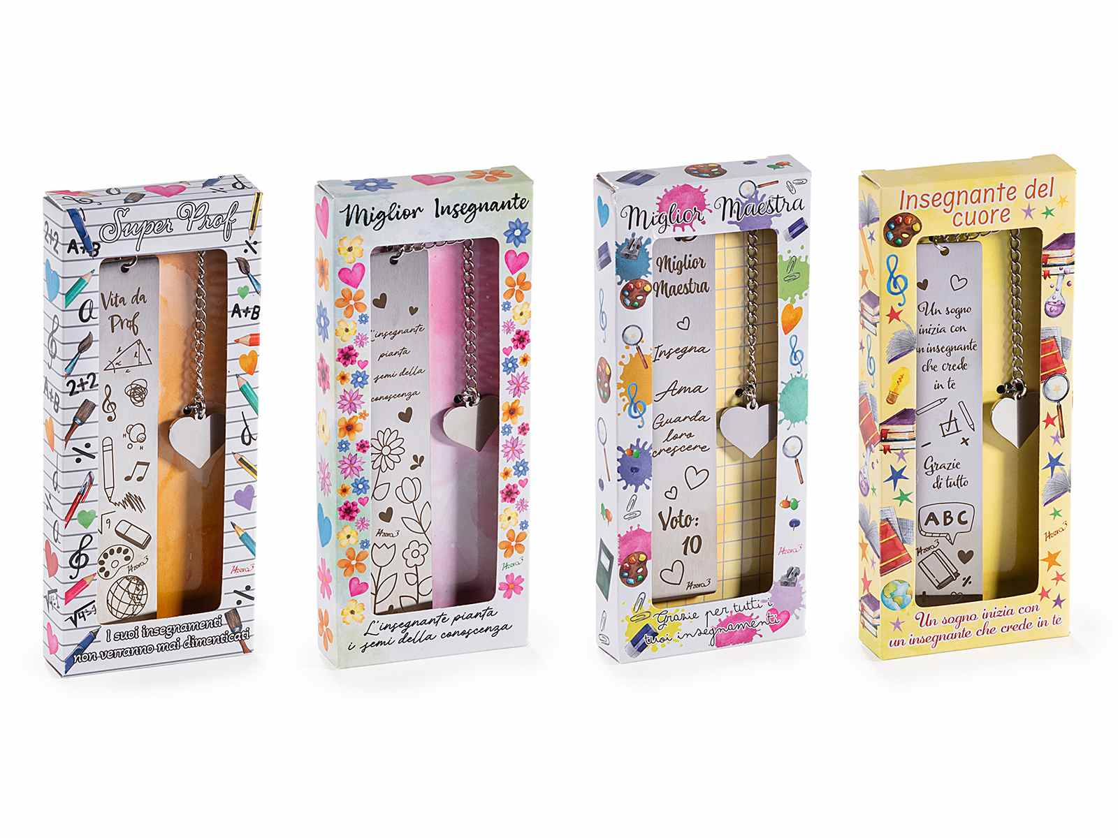 Semn de carte metalic cu textul profesorilor și un pandantiv în formă de inimă, perfect cadou. Prezentat într-un set de 12 piese.